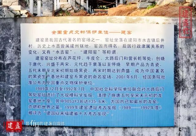 2001年,建窑遗址被国务院公布为第五批全国重点文物保护单位;